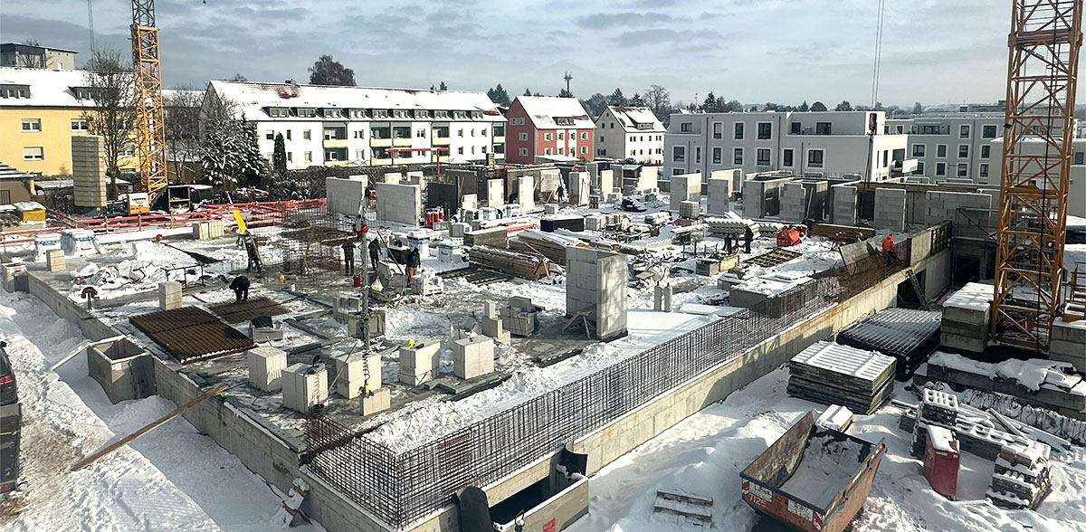 Die Rohbauarbeiten der Mietwohnungen sind abgeschlossen.